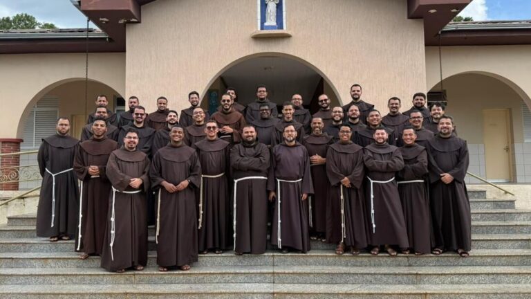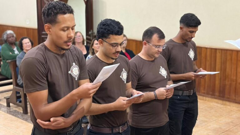 Catalão (GO) – Na manhã desta quinta-feira (15), 07 jovens postulantes receberam o hábito franciscano e assim, foram revestidos como noviços no Noviciado Comum em Catalão/GO